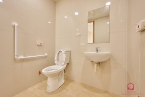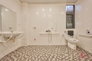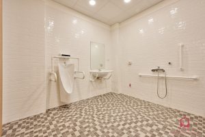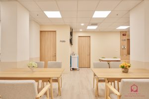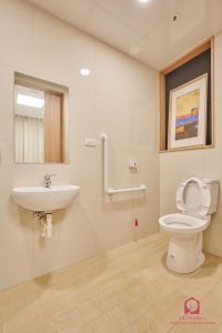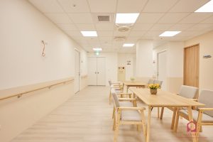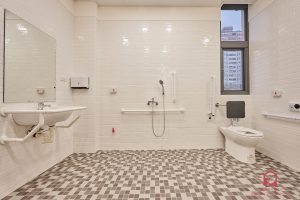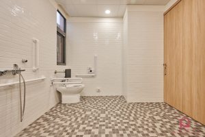 安全,是我們照護的生命底線。每一處細節都經過專業嚴謹的設計:防火隔間具備3小時延燒阻絕時效,房間門採用高規格防火遮煙設計,有效降低火災蔓延風險,每個房間均是安全的防火區劃。全面佈建消防灑水系統與即時安全通報機制,地板選用國際認證的防滑地磚,確保長者行動安全。